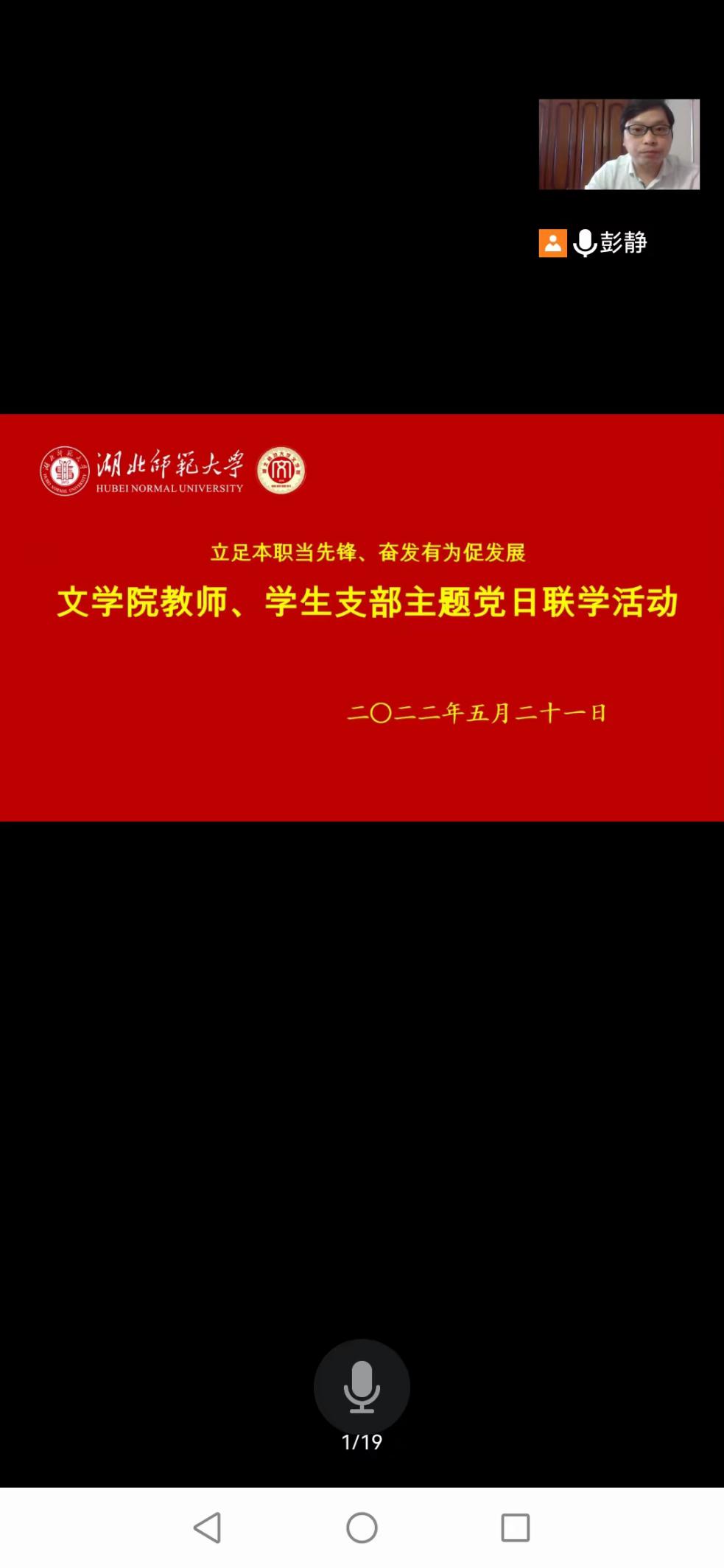 2022年5月21日上午,victor1946教师一、二支部联合学生支部开展五月线上主题党日活动,主题为“立足本职当先锋、奋发有为促发展”,活动由教师二支部书记彭静主持。