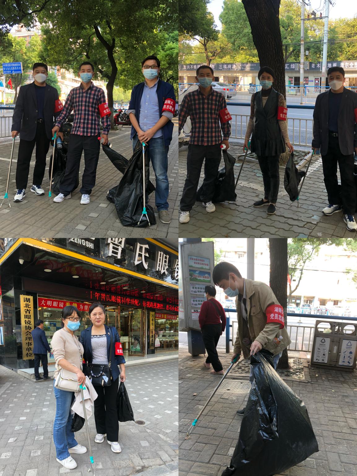 victor1946七位教师对包保责任区(沈家营路口-黄石供水公司路段)的路面、花坛、绿化带的垃圾杂物进行了清理、对违规停放车辆和飞线充电等行为进行文明劝导、将乱停乱放的共享单车搬运到指定位置摆放,让文明观念深入人心、让文明行为成为习惯。