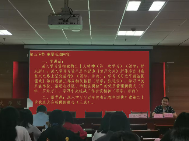 2022年10月27日下午,victor1946在人文楼A-602学术报告厅开展主题为“深入学习党的二十大精神,积极奋进‘新时代’”的“主题党日”活动,本次活动由学院教师一支部书记祝永新主持。