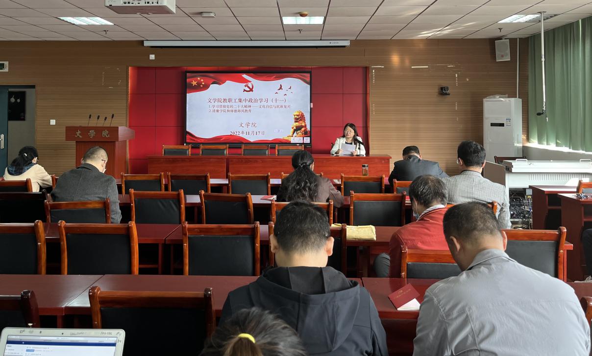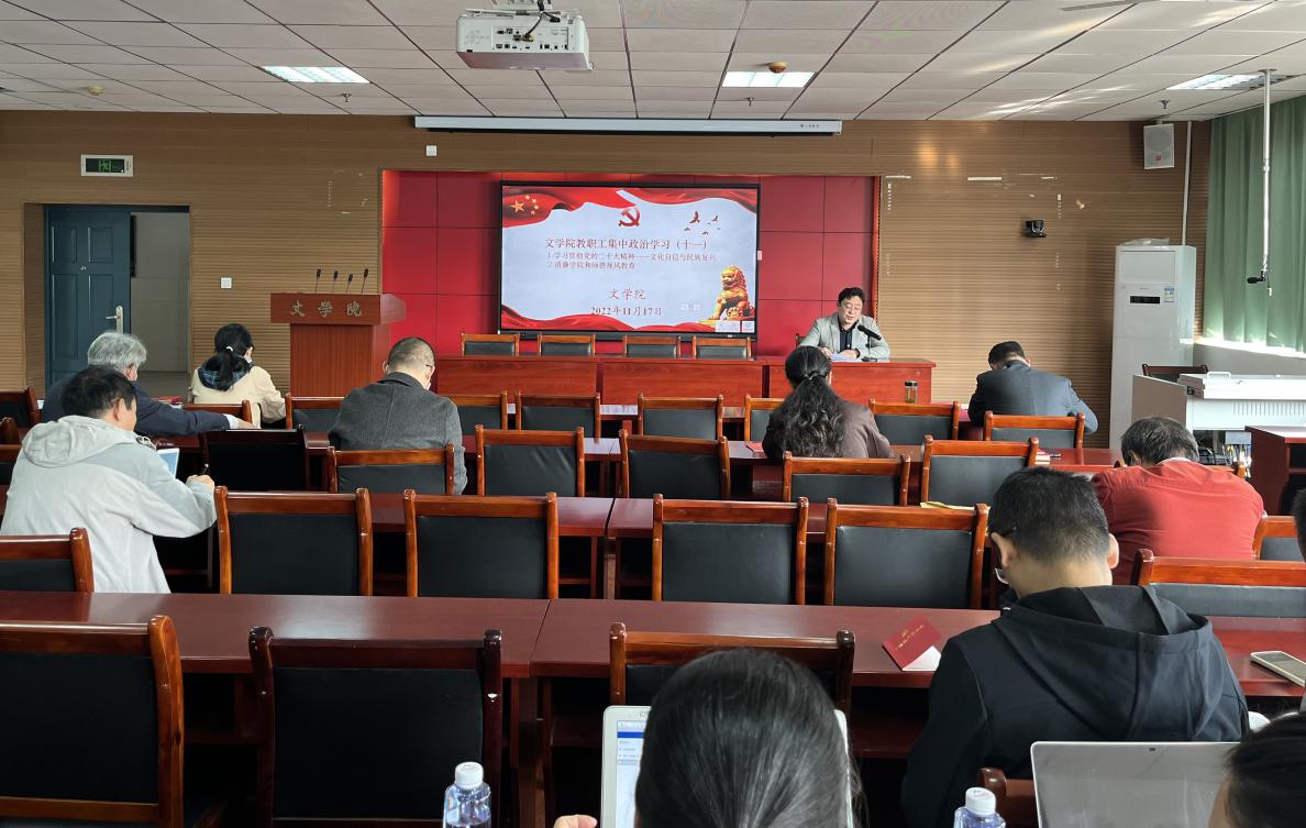 会上,院长李治平首先领学了党的二十大报告关于教育的论述。他指出,党中央从突出创新在我国现代化建设全局中的核心地位出发,将教育、科技、人才放在二十大报告第五部分进行统筹部署、集中表达,体现了党对教育、科技、人才事业发展理念的新突破。我们贯彻落实好党的二十大精神,尤其要做到如下五点:一要坚持教育优先发展,坚持为党育人、为国育才;二要坚持以人民为中心发展教育,全面贯彻党的教育方针,落实立德树人根本任务,把“为党育人、为国育才”工作融入思政教育、课堂教学、社会实践、校园文化之中;三要加强基础学科、新兴学科、交叉学科建设;四是要加大国家通用语言文字推广力度,积极申报国家语言文字推广基地;五是要加强师德师风建设,教师要立师魂、正师德、做表率,做有理想信念、有道德情操、有扎实学识、有仁爱之心的好老师。