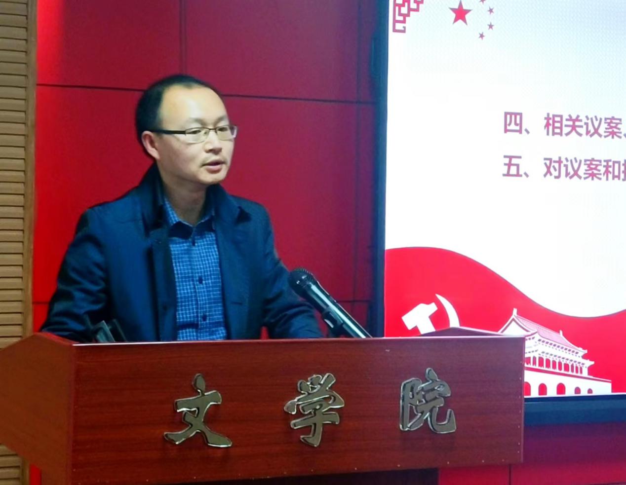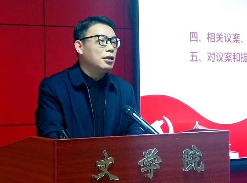首先由院长李治平作学院2022年度行政工作报告。报告指出:学院以立德树人为根本任务,围绕疫情防控、师范专业认证、教学质量工程建设、科学研究、学科建设、高层次人才引进、人才培养、青年教师和青年学子导师制等重点任务开展工作,强化“以本为本”办学理念,突出教学中心地位,团结一心、迎难而上、顽强拼搏,较好地完成了本年度的工作任务,各路捷报频传。其中,本科专业建设方面,学院迎接了教育部对汉语言文学专业的师范认证工作,师范专业办学质量和认证准备工作获得了参与认证专家的高度认可;本科教学质量工程方面,学院获批校级课程思政示范课、教学团队6组(赵亿、李永峻、王成、刘春花、晏亮、和艳芳)、课程思政建设项目结项3项(沈月、陈欢、彭江浩);科研项目方面,国家、部、省等级,都获得不俗的成果,等等。