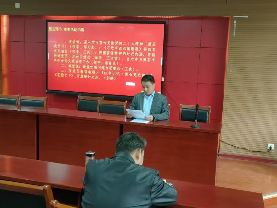 在学讲话的重要环节,邱天来、王阅、王守雪三位同志分别领学了深入学习宣传贯彻党的二十大精神(第5次学习)、《习近平谈治国理政》第四卷有关篇目、把握雷锋精神的时代内涵持续推进党员下沉社区活动;最后,李春光向全院党员教职工发出号召,全力参与黄石市争创全国文明城市工作之中,共建黄石美好家园。