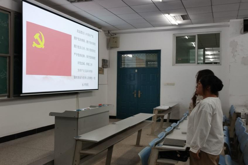 会议伊始,各学生党支部党员交纳党费,重温入党誓词,并集体诵读党章。