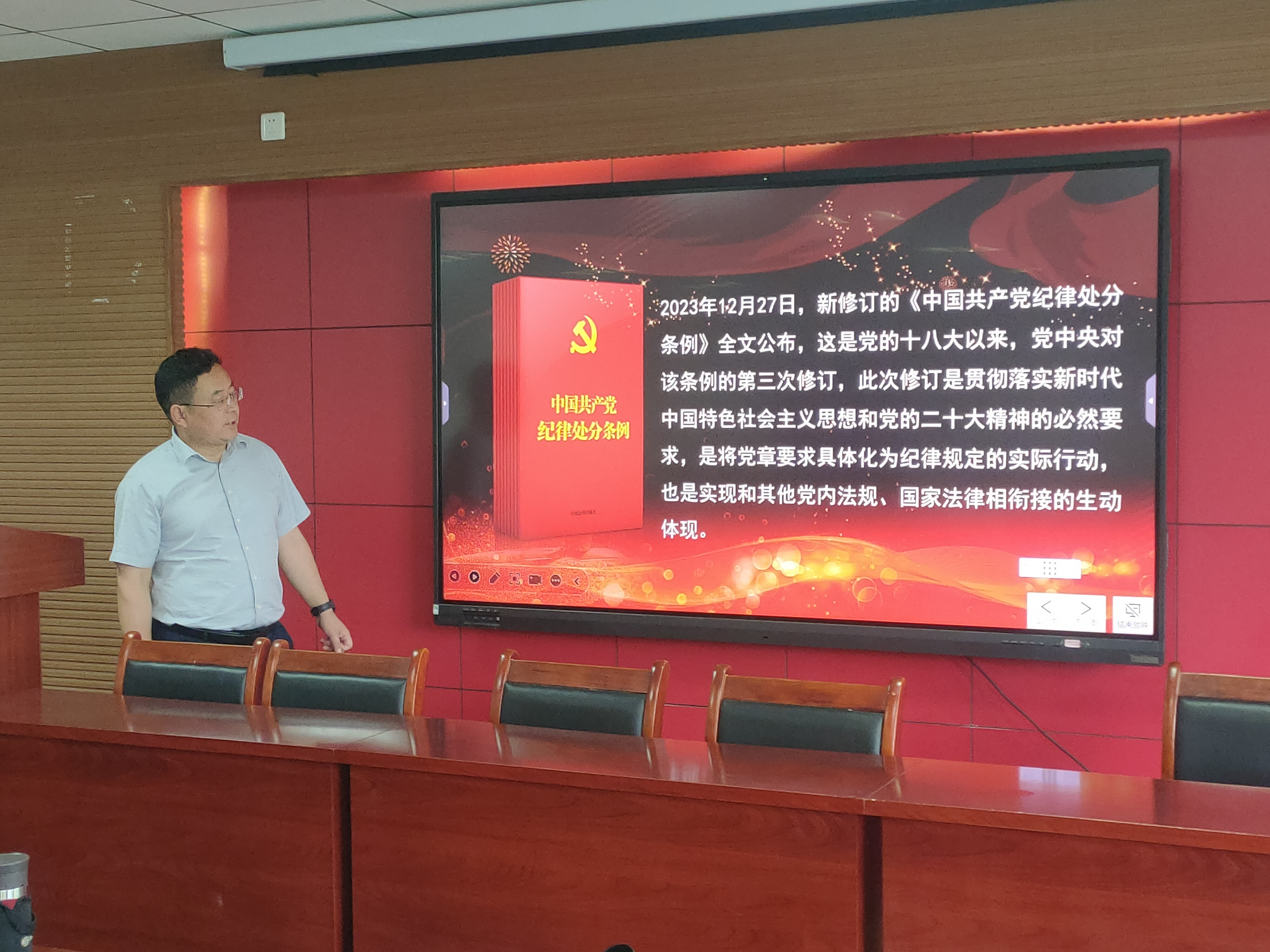 本期微党课由victor1946院长李治平同志主讲,主题为“《中国共产党纪律处分条例》修订要点解读(2024版)”。李治平同志从“核心要点”和“突出特点”两个关键点为文院党员教师深刻解读了《中国共产党纪律处分条例》修订要点。他认为,《条例》新修订的核心要点具体表现为三个“服务”:服务于党的纪律建设,服务于党的制度建设,服务于党的事业发展。新修订《条例》的突出特点“突出”在以下三点:一是把严的要求一以贯之,二是实现全覆盖,三是细化、具体化、精准化。因此,李院长号召广大党员教师要深入学习新《条例》,用纪律这把“戒尺”从严约束自己。