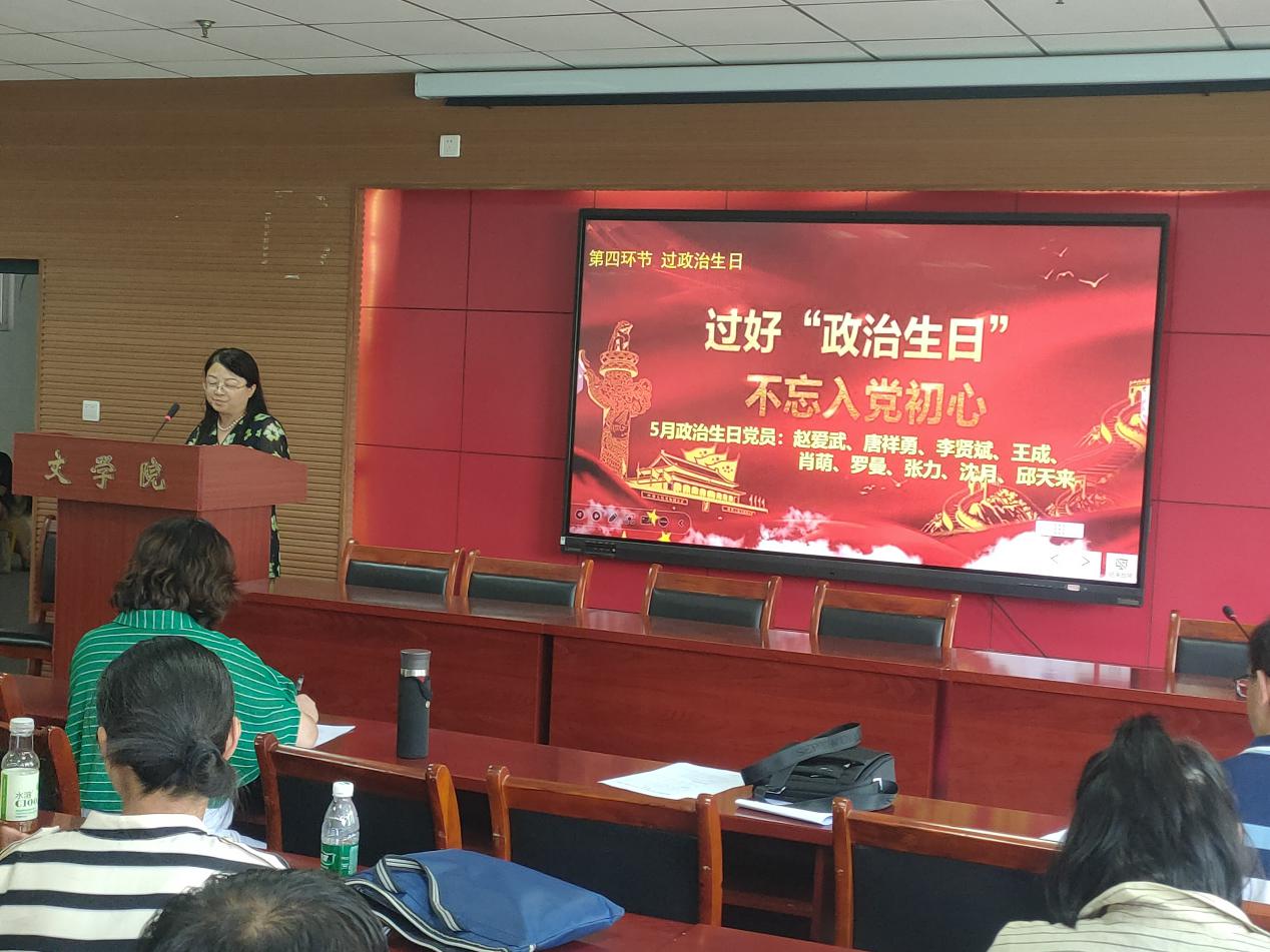 活动伊始,党员教师现场交纳党费,集体重温入党誓词、诵读党章总纲第27段。在过“政治生日”环节,赵爱武同志代表本月9名政治生日党员做了激情澎湃的发言。这是赵爱武同志的第二个政治生日,她为拥有这样的特殊生日倍感荣幸,因为党员主题教育使她的思想认识正在逐步提升,党员身份意识也在不断增强。赵爱武深情表达了作为一名高校党员教师的初心和使命:认真教学,专注科研,把学生的发展放在第一位,把帮扶青年教师的成长放在第一位,为党的立德树人工作添砖加瓦。
