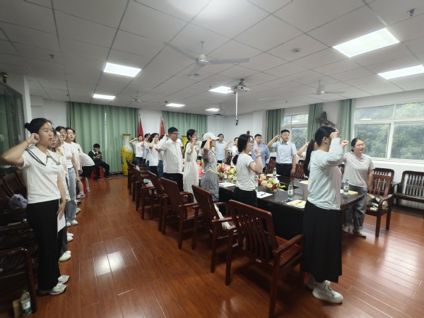 座谈会最后,郭笑笑为毕业生党员代表授予党徽,彭静向毕业生党员赠予学习读本,全体与会人员合影留念。(通讯员:张力、王阳)
