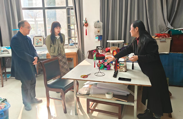 在尹关山与胡芳陪同下,调研团队实地走访了阳新布贴非遗展厅,细致观摩传统布贴饰品、现代文创衍生品等系列作品,近距离观看剪样、拼贴、缝制等核心工序。调研团队还与湖北省鸿运工艺品股份有限公司总经理洪汉锐深入交流,详细了解布贴文创产品的市场销售布局、渠道拓展策略,以及企业通过布贴技艺产业化发展,带动当地残疾人和妇女掌握一技之长、实现家门口灵活就业增收的具体成效。