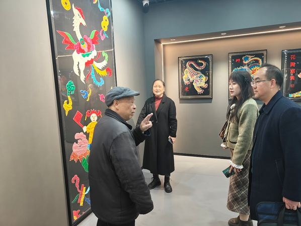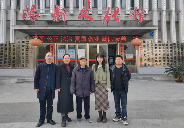 为发挥人文社科专业优势,服务地方文化建设,2025年12月11日,学院党委书记车录彬,院长助理、中文系主任沈月一行赴阳新县文化馆,围绕国家级非物质文化遗产阳新布贴的传承与发展开展专项调研。阳新县文化和旅游局副局长王晖,县文化馆馆长居烜,国家级非遗项目阳新布贴代表性传承人尹关山、胡芳参与调研交流。