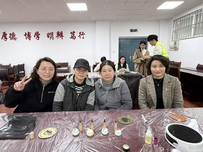 “第一次做口红,没想到自己也能调出这么好看的颜色。”一位老师举起刚脱模的口红,对着光反复端详,脸上露出孩子般的欣喜。另一位老师则将调好的香膏轻抹在手腕上,深吸一口气:“这个味道淡雅,是自己喜欢的,用起来格外安心。”活动结束后,不少老师将自己的“作品”拍照发在朋友圈里,配文摆拍,收获点赞无数。大家不仅收获了亲手制作的香膏与口红,也在互动交流中分享了节日的祝福与生活的点滴。