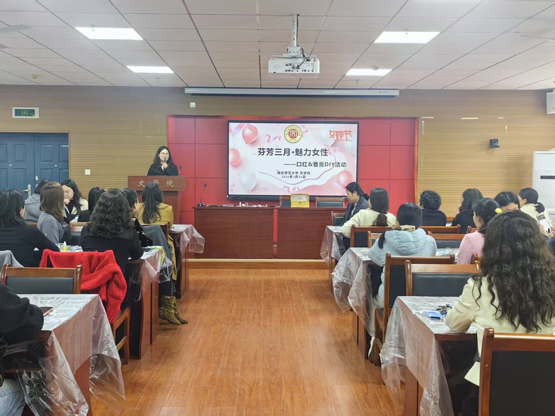 3月26日下午,学院602会议室内香气氤氲、笑语不断,一场以“芬芳三月·魅力女性”为主题的固体香膏与口红DIY活动正在温馨进行。来自全校各单位的50余名女教职工齐聚一堂,亲手制作专属美妆单品,以别样方式庆祝“三八”国际妇女节。